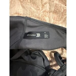 All in motion brand from Target. Women's size XL. Excellent condition, smoke free home, no flaws. Sporty grey camo color/pattern. Medium support.