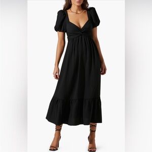 NWT ASTR The Label Women's Twist Bust Tie Back Midi Dress In Black Size Large