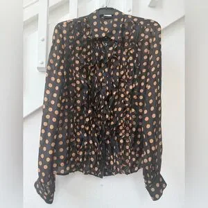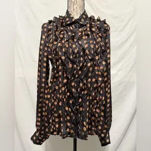 Just Cavalli by Roberto Cavalli Polka Dot Ruffled Silk Blouse Sz L (10/12) It 46