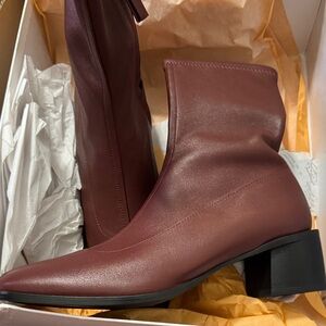Elegant merlot colored Italian leather zip up booties very stylish current style on their website at this time in a size 9 Ideal for versatile wear.