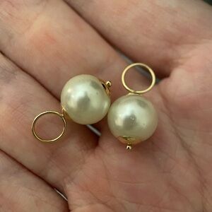 Vintage 14k solid yellow gold charm with 10mm pearl. Might be faux pearl. Great as an earring charm or necklace pendant. I have a pair of them but selling separately because I think they look awesome on necklaces. Listing is for the one in pictures. If you want both, just purchase both listings.