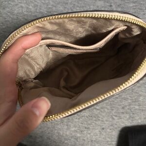 Chic Michael Kors cosmetic bag in blush. Compact and stylish. Perfect for essentials.