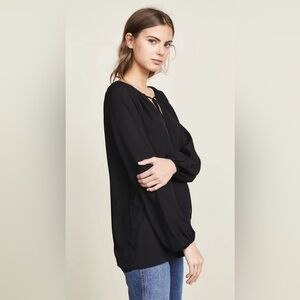 THEORY Silk Gathered Slit Neck Long Sleeve Blouse Top Size M