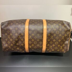 This Authentic Louis Vuitton Keepall was manufactured in France during 1994. It is in amazing condition. The perfect carry-on and an icon since its inception in 1930, the pre-owned authentic Keepall duffle bag is rendered in the iconic Monogram coated canvas, featuring Vachetta leather trim and accented with gold-tone brass hardware. The Keepall has a surprisingly spacious interior that provides what every traveler wants: the ability to pack more. The bag truly lives up to its name as it can store all you need as you travel for work or leisure. Please let me know if you have any questions or would like more pictures or details. Thank you so much!! 🎀🌺