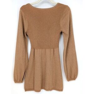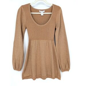 VTG Y2K Charlotte Russe Gold Metallic Babydoll Ribbed Balloon Sleeve Knit Top L