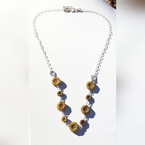 Floral Earth Toned Beaded Sterling Silver Necklace.