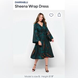 NWOT. Chic belted wrap dress with teal and orange patterns. Long bell sleeves. Stitch Fix.