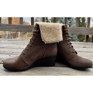 UGG Zea Women’s 7 Wedge Winter Lace Up Ankle Boots Booties 1003360 - Brown
