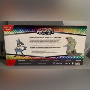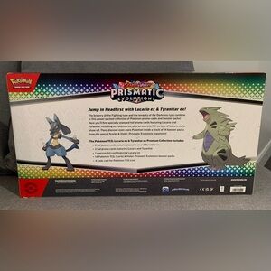 Brand new, sealed POKEMON PRISMATIC EVOLUTIONS LUCARIO EX & TYRANITAR EX PREMIUM COLLECTION BOX. Sold out!