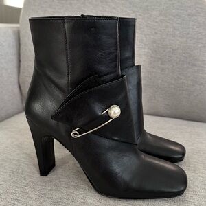 Nine West Black Leather Ankle Boots with Pearl Detail – New Without Tags