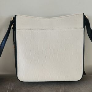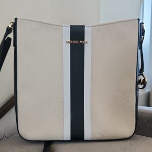 Elegant crossbody bag by Michael Kors. Features cream canvas with bold black and white stripe. Adjustable black strap and gold-tone hardware. Excellent condition, i believe it's new without tag.