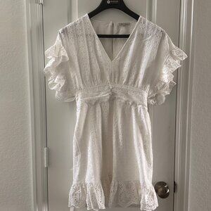 White Eyelet Lace Ruffle Sleeve Dress By The Clothing Company L