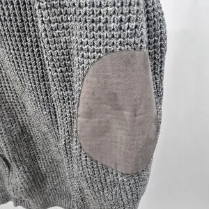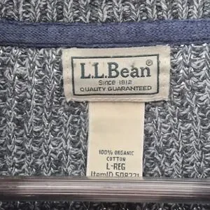 LL Bean Sweater Mens Large Gray Full Zip Elbow Pad Waffle Knit Grandpa Core