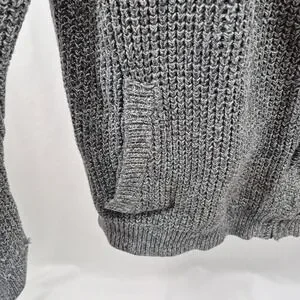 The LL Bean Sweater is a vintage piece with a classic fit, perfect for a casual or business occasion. Made from heavyweight cotton in a solid gray color, this full zip sweater features a waffle-knit fabric type with elbow pads for added style. The collared neckline and long sleeves give it a grandpa core look that is both timeless and stylish. Perfect for any man looking to add a touch of retro charm to their wardrobe.