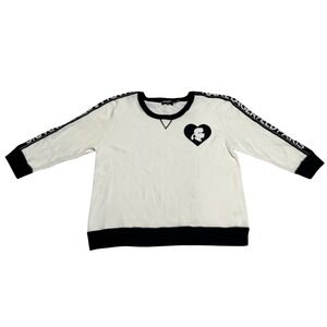 Karl Lagerfeld Paris Designer Sweater Cream Black Graphic Knit Logo Sleeve Sz XL