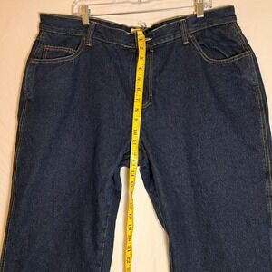 The Red Head Brand Co. Fleece Lined Blue Jeans in mens size 40x32 are a stylish and cozy option for the winter season. Made of cotton with a fleece fabric type, these solid blue jeans feature a zip closure, mid-rise fit, and a 5-pocket design. The fleece lining provides extra warmth, making them perfect for colder weather in fall, winter, or even early spring. With a regular fit and classic style, these jeans are a versatile addition to any man's wardrobe.