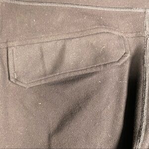 LULULEMON Men’s Joggers. 87% Nylon and 13% Spandex. Size Medium Regular. Straight legs. Two front pockets without zippers and two hip pockets with flap. Waistband is stretch with ties on the inside. Very nice EUC.