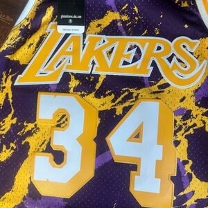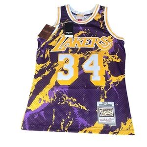 MENS S - NEW Mitchell & Ness Swingman Lakers #34 Shaquille O'Neal Sewn Jersey