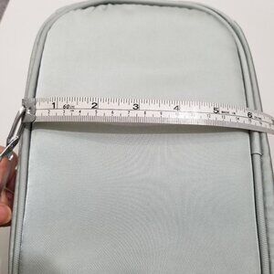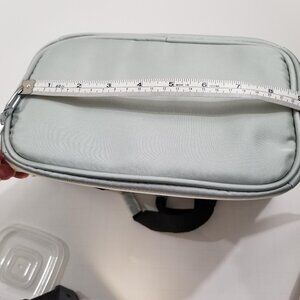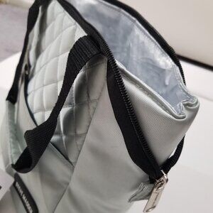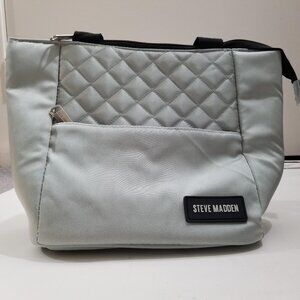 Steve Madden brand Lunch bag/tote. Unsure of the exact color, could be sage, gray. Comes with small clear container with lid inside. Found a minor unknown mark in the front (see picture). New with tag attached. Clean inside.