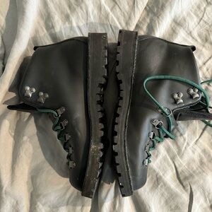Iconic danner mountain light lace up boots. Changed out to authentic danner laces in green. Durable lace-up design. Rugged sole for traction.