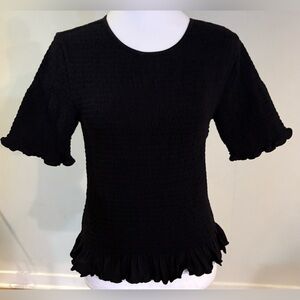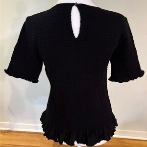 NWT, Ann Taylor Smocked Ruffle Trimmed Short Sleeve Shirt, Black, Size XS