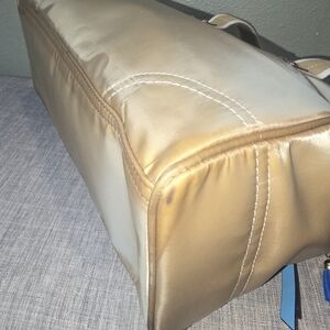Nwt Coach Hampton Gold & Blue Leather Weekend Small Tote