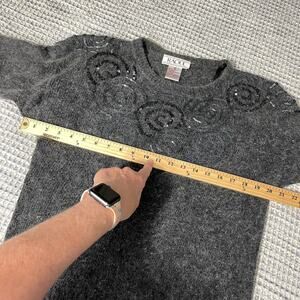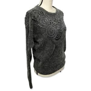 Raoul VINTAGE Gray Silk Angora Sweater Womens Sz M Beaded Sequins Long Sleeve