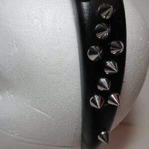 Keywords: Studded head band, Spikes, Spikey, Vegan leather, Gothic, Goth, Steampunk, Witch, Witchy, Wiccan, Witchcore, Vampire, Vamp, Alternative, Alt, Whimsigoth, Whimsical, Dark Academia, Corporate Goth, Fantasy, Cosplay, Festival, Retro, Mallgoth, Hot Topic, Emo, Grunge, Rivet, Punk Rock, Rock & Roll, Metal, Fetish, BDSM, Cyber, Cyberpunk, Clubwear, Halloween, Gift, Stocking Stuffer, Hair Accessory, Pastel Goth, Cotton Candy, Bubble Gum Pink, Barbie