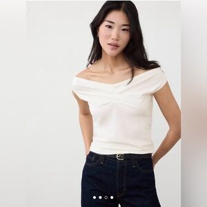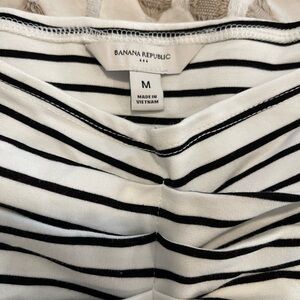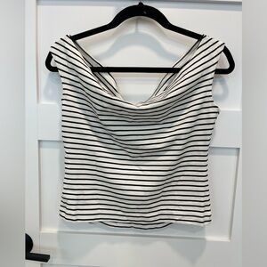 Like new Banana Republic off the shoulder top, black and top, flattering neckline, very comfy material with stretch. Only worn once, I think it’s just a smidge too short for me (best for average to shorter torso). Otherwise I would totally keep it!