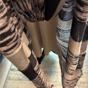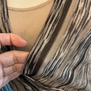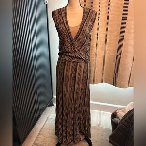 Chic sleeveless maxi dress with a wrap-style front. Features a stylish striped pattern. Perfect for versatile wear.