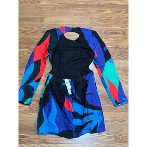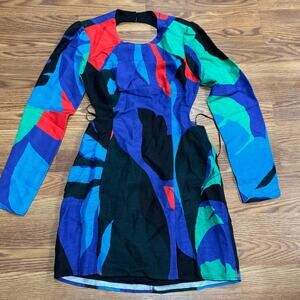 THE WOLF GANG LOLITA CUT OUT MINI DRESS in SPLICE Multicolor abstract medium