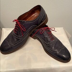 Vero Cuoio Men's Navy Leather Oxfords with Red Laces