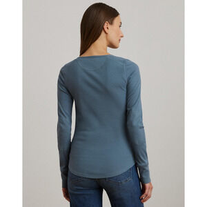 Lauren Ralph Lauren Women Rib Knit Henley Tee Blue Dusk Size L
