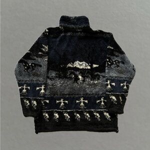 Vintage 90’s Black Mountain Outdoor Western Design Zip Up Fleece Jacket. Size S.