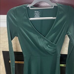 Chic long sleeve dress by OGL. Deep green hue. Perfect for elegant occasions.