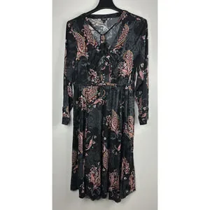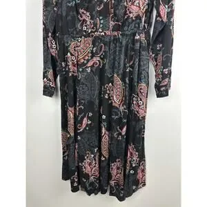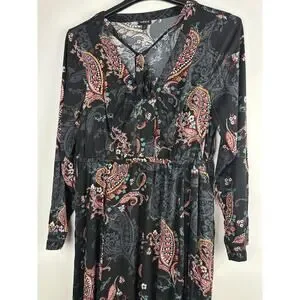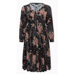 Torrid Midi Challis Skater Dress Black Paisley Plus Size 1 1X Boho Festival
