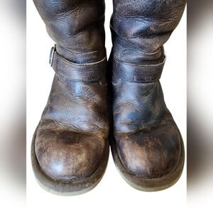 UGG Kensington Toast Brown Leather Boots, waterproof, sheepskin lining, size 8