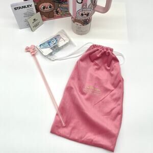 Included: Labubu Stanley + clear straw + pink bow silicone straw cover + collector's box + velvet dust bag with authentic label stamp