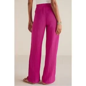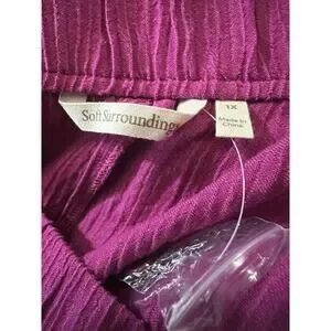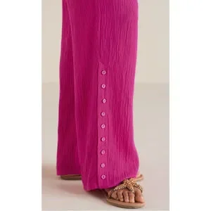 Soft Surroundings Oceo Gauze Wide Leg Pants Button Hem Fuchsia Plus Size 1X