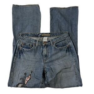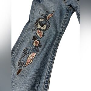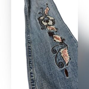 Vintage Y2K Z. Cavaricci embroidered and sequined boot cut jeans. Tagged a size 8 but please see measurements for more accurate sizing. In great used condition.