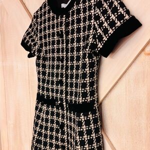 New with tags - Allegra dress - houndstooth Chic mini dress with a classic black and white pattern. Short sleeves and round neckline and velvet trim, in stores now for $250. Perfect for any occasion.