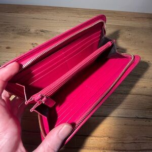 100% authentic Saint Laurent zip long wallet. Very vibrant color. Overall good pre ❤️ condition some wear through including corners and hardware scratches and discoloration on zipper pull. Exceptionally clean inside, see all photos to give you more detail.
