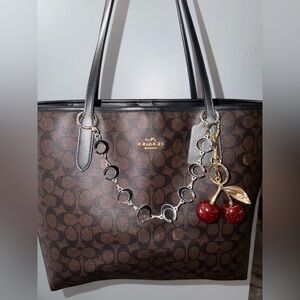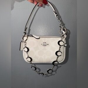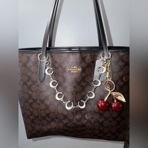 This stunning bag extender features elegant black and white crescent moons linked with gold accents, perfect for adding a touch of sophistication to any bag.
