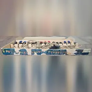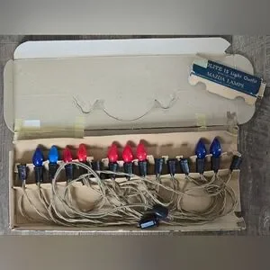 Vintage Glolite 15 light outfit Christmas lights in their original box. They work perfectly despite missing a few bulbs. The box has seen better days, but the graphics are great. Ships from a clean, smoke-free home.