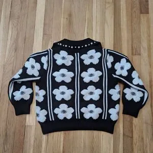 Floral Pattern Pearls Beaded Crop Sweater black and white. From boutique.