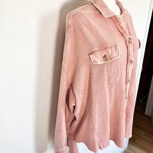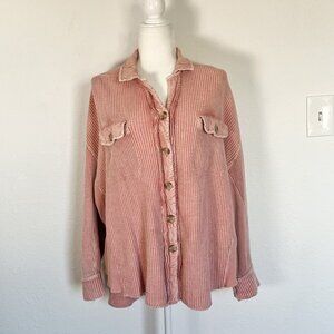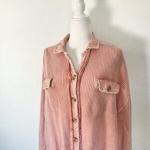 FP One Scout Jacket Mauve Waffle Long Sleeve Button Down Oversized Shacket