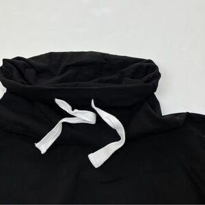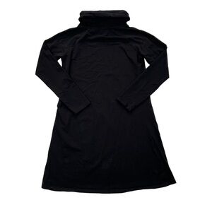 Duffield Lane Black Funnel Neck Emmerson Sweatshirt Dress. Drawstring funnel cowl neck. Long sleeve. Pullover. Cotton spandex blend. Retail: $159. Size Medium. Armpit to armpit: 18.5". Armpit to end of sleeve: 20". Length: 34". (954)
