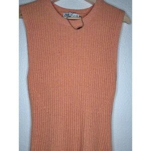 ZARA Orange Ribbed Sleeveless Knit Mini Dress Size L