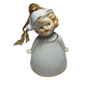 Vintage Porcelain Girl Bell With Gold Trim & Hanging Cord