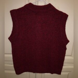 Adorn yourself with bows with Damson Madder's Aggie Knit Vest. Designed to be worn as a top or layered within a look, the Aggie vest features a burgundy cable knit and black ribbon ties. Non-functional ribbon ties Sleeveless design 35% polyester, 33% recycled polyester, 22% nylon, 8% RWS wool, 2% elastane. UK 10 = US 6. Purchasing is an acceptance of this. Purchased in Anthropologie.